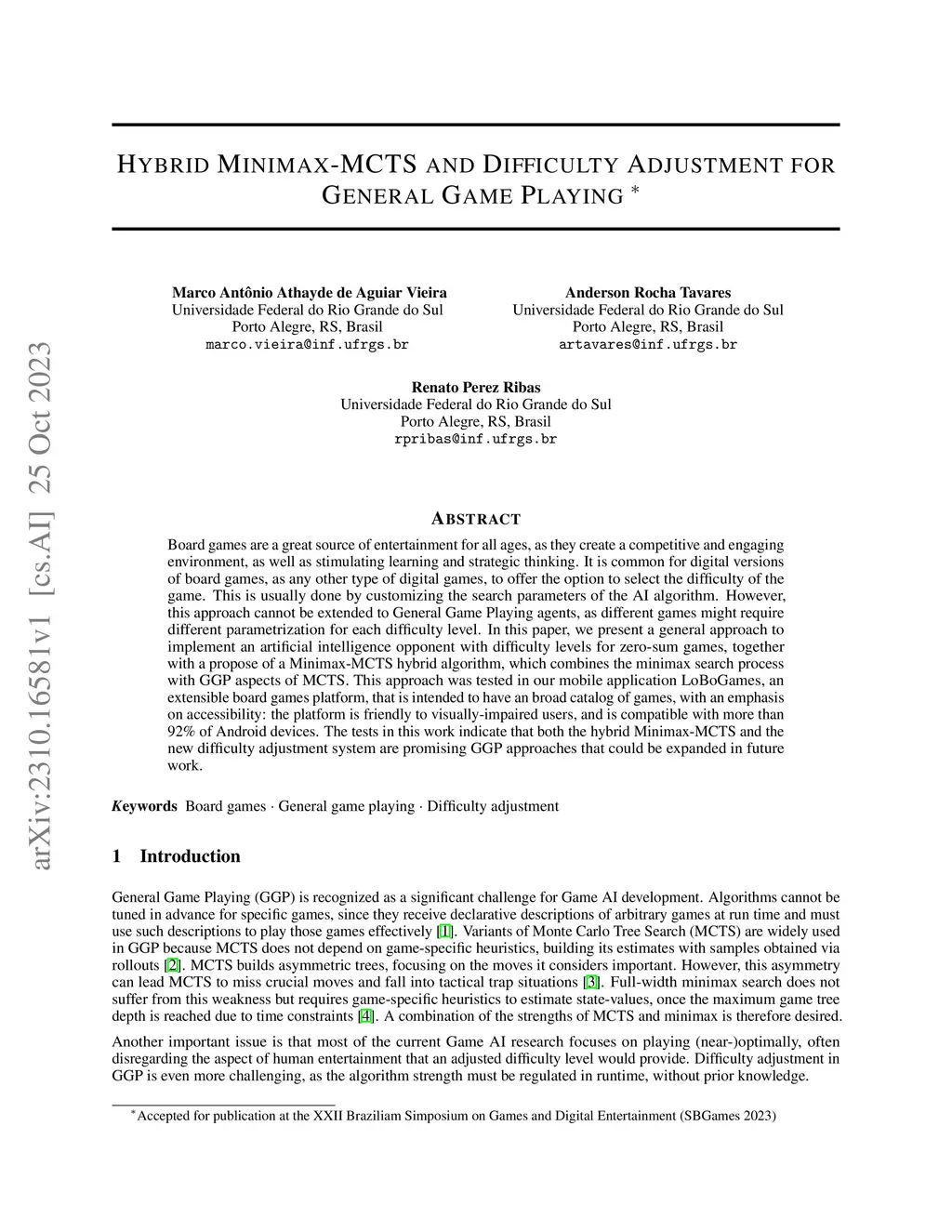 Hybrid Minimax-MCTS and Difficulty Adjustment for General Game Playing