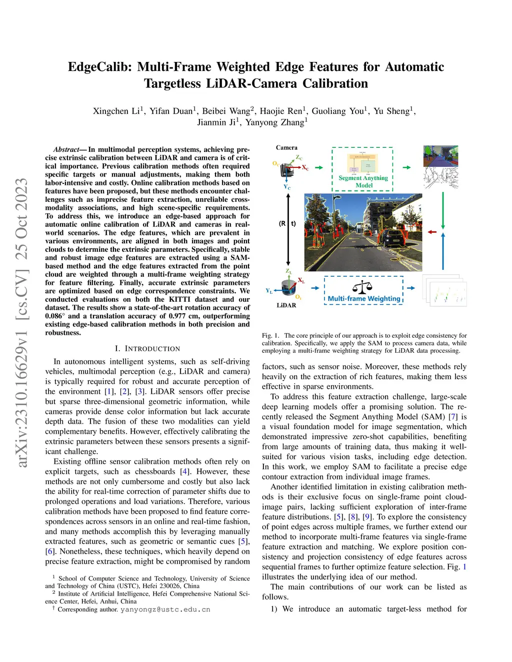 EdgeCalib: Multi-Frame Weighted Edge Features for Automatic Targetless