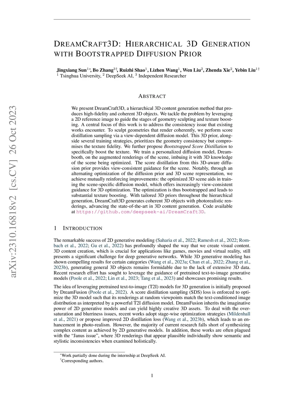 DreamCraft3D: Hierarchical 3D Generation with Bootstrapped Diffusion
