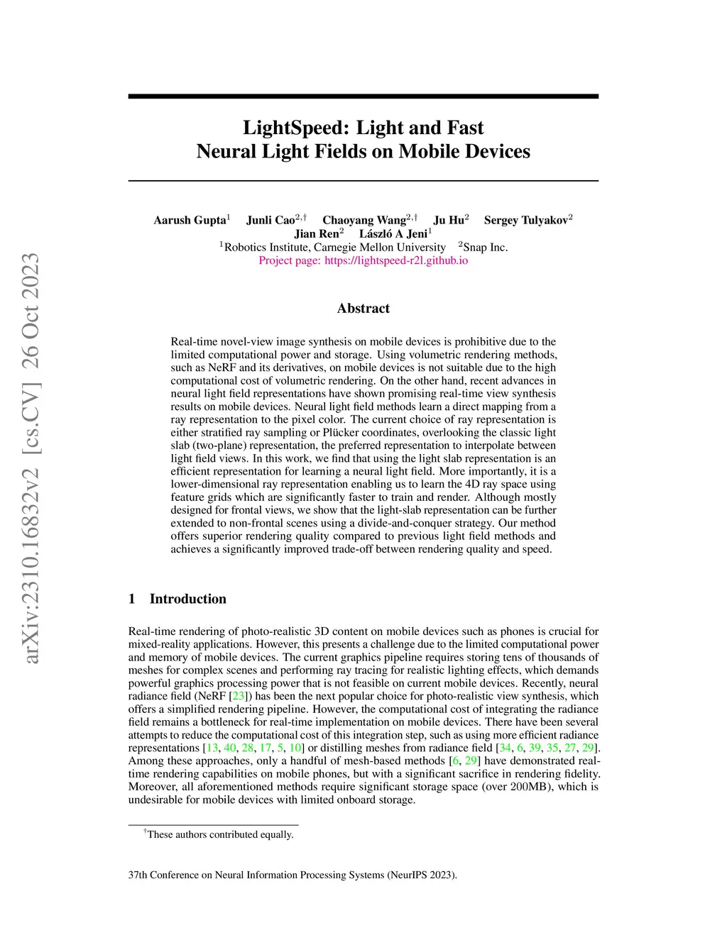 LightSpeed: Light and Fast Neural Light Fields on Mobile Devices