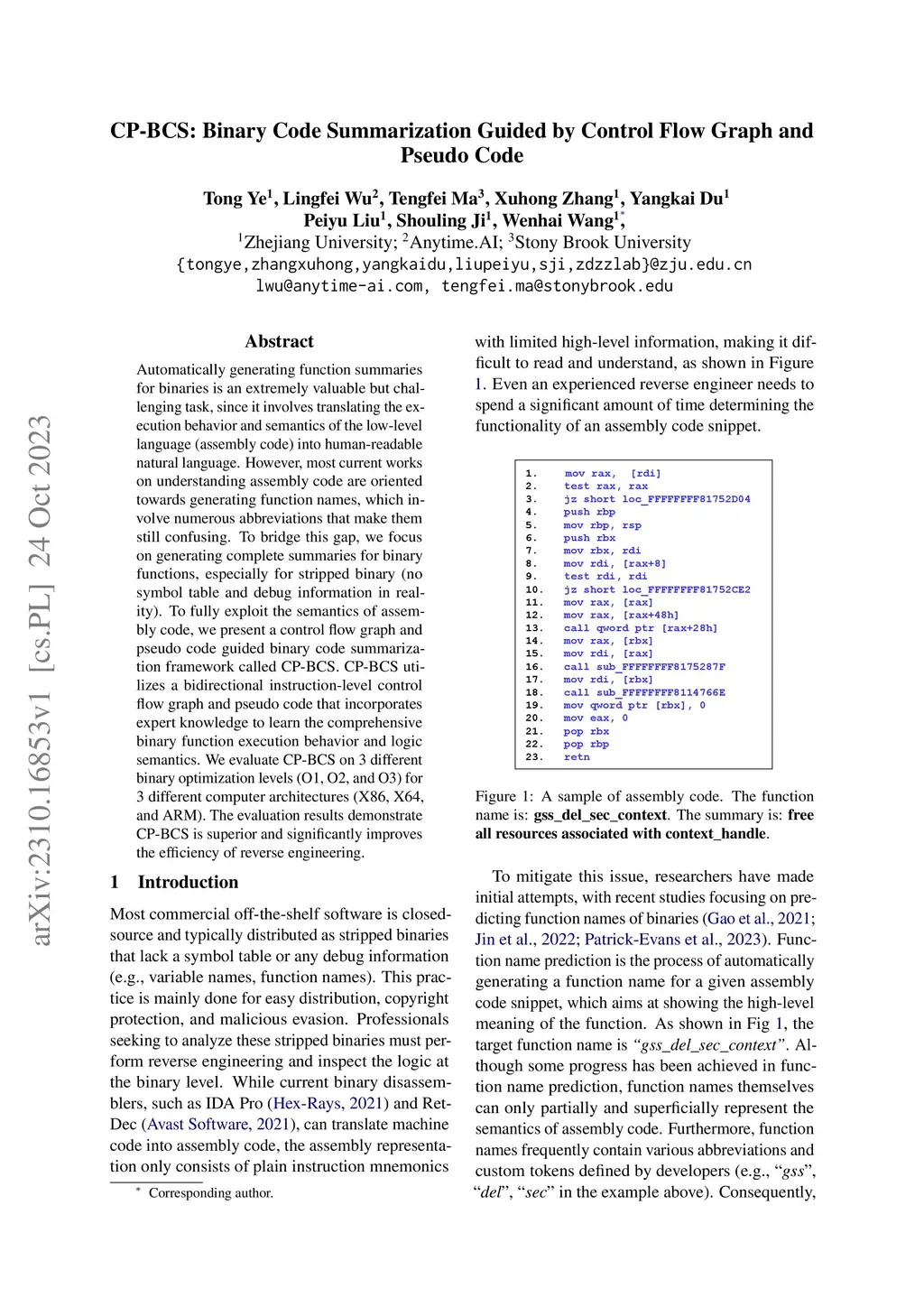 CP-BCS: Binary Code Summarization Guided by Control Flow Graph and