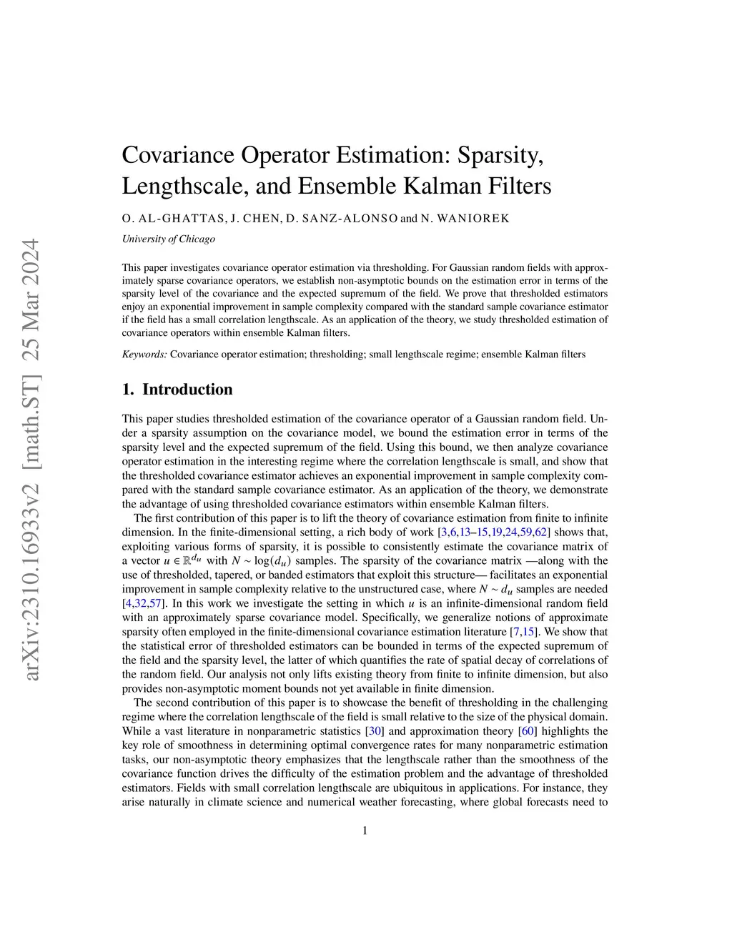 Covariance Operator Estimation: Sparsity, Lengthscale, and Ensemble