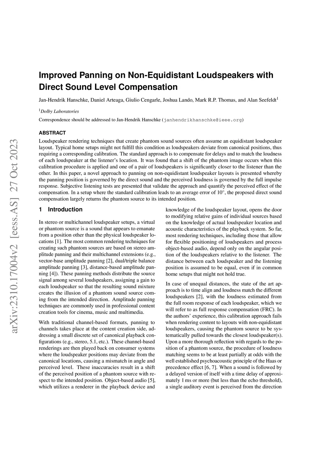 Improved Panning on Non-Equidistant Loudspeakers with Direct Sound Level