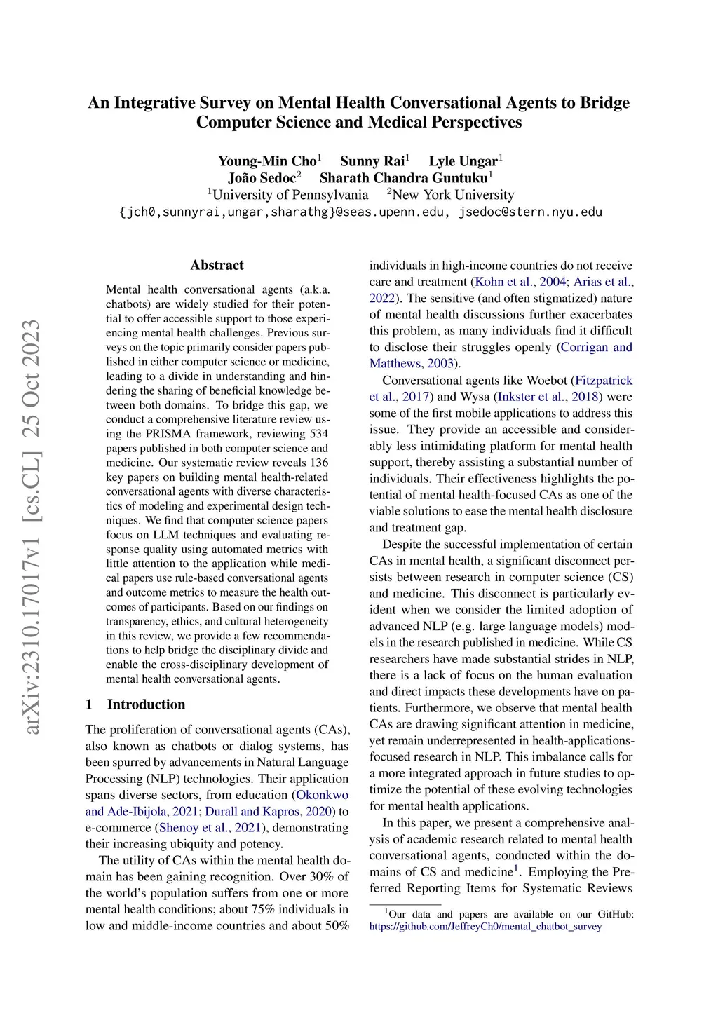 An Integrative Survey on Mental Health Conversational Agents to Bridge
