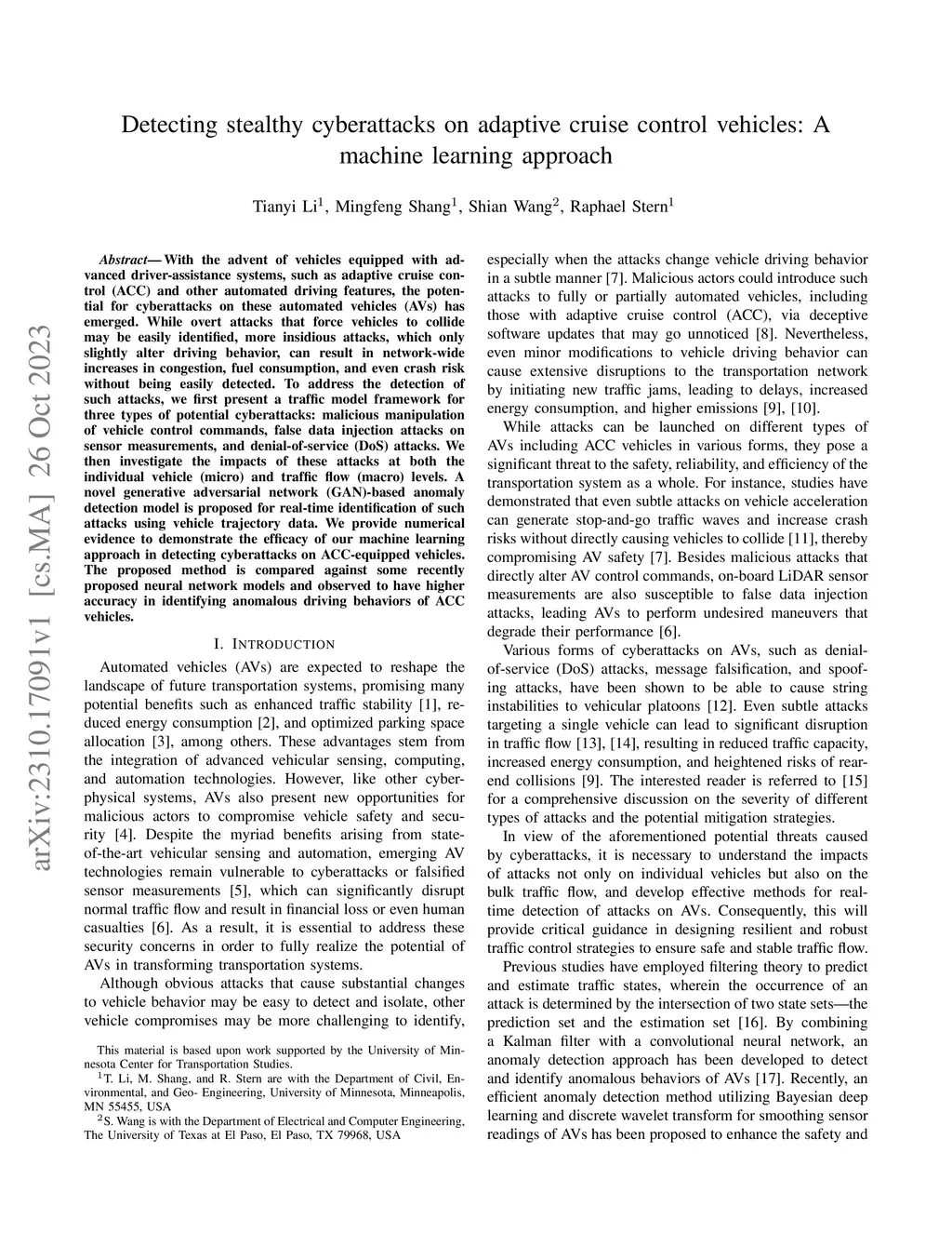 Detecting subtle cyberattacks on adaptive cruise control vehicles: A machine learning approach