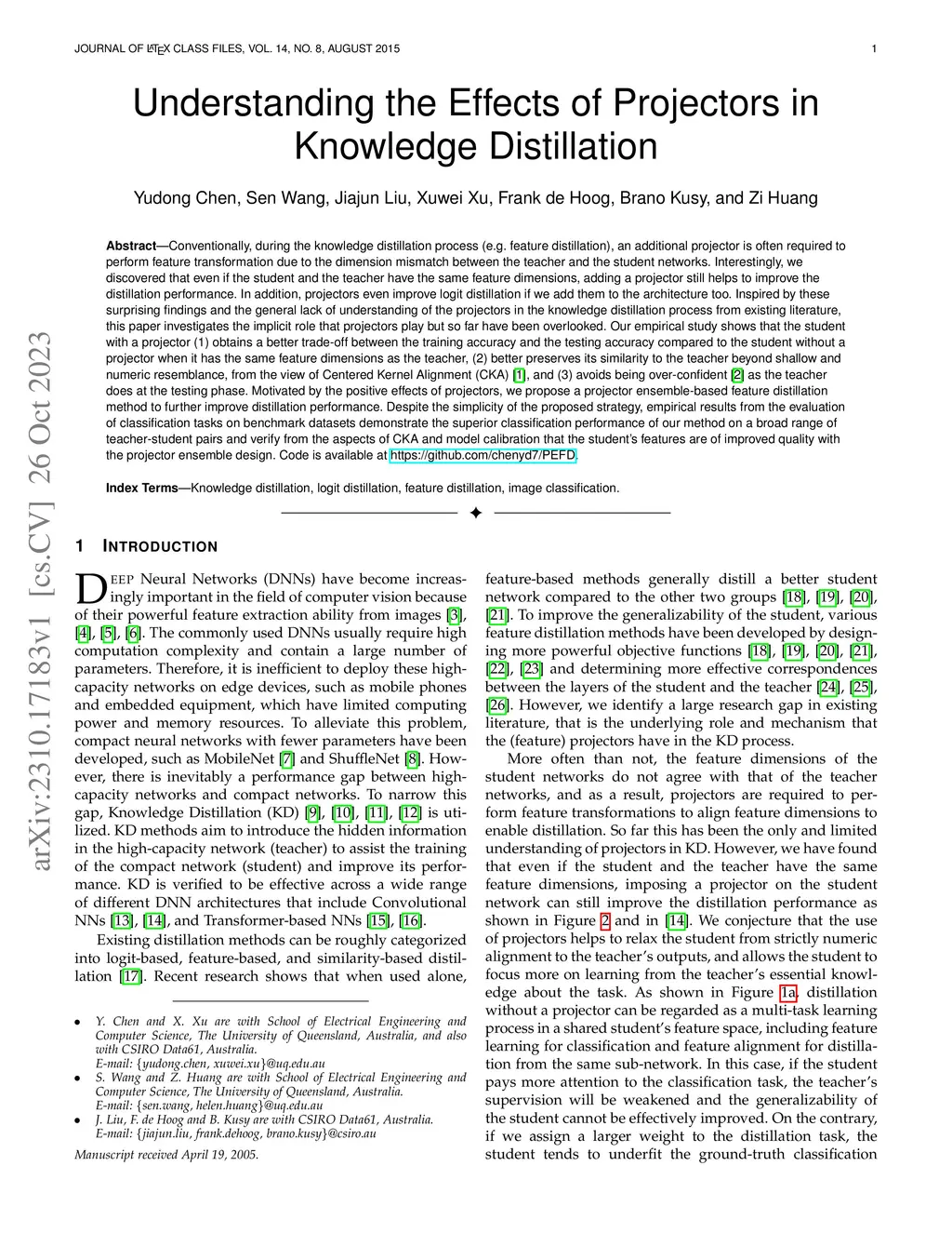 Conventionally, during the knowledge distillation process (e.g. feature distillation), an additional projector is often required to perform feature transformation due to the dimension mismatch between the teacher and the student networks. Interestingly, we discovered that even if the student and the teacher have the same feature dimensions, adding a projector still helps to improve the distillation performance. In addition, projectors even improve logit distillation if we add them to the architecture too. Inspired by these surprising findings and the general lack of understanding of the projectors in the knowledge distillation process from existing literature, this paper investigates the implicit role that projectors play but so far have been overlooked. Our empirical study shows that the student with a projector (1) obtains a better trade-off between the training accuracy and the testing accuracy compared to the student without a projector when it has the same feature dimensions as the teacher, (2) better preserves its similarity to the teacher beyond shallow and numeric resemblance, from the view of Centered Kernel Alignment (CKA), and (3) avoids being over-confident as the teacher does at the testing phase. Motivated by the positive effects of projectors, we propose a projector ensemble-based feature distillation method to further improve distillation performance. Despite the simplicity of the proposed strategy, empirical results from the evaluation of classification tasks on benchmark datasets demonstrate the superior classification performance of our method on a broad range of teacher-student pairs and verify from the aspects of CKA and model calibration that the student's features are of improved quality with the projector ensemble design.