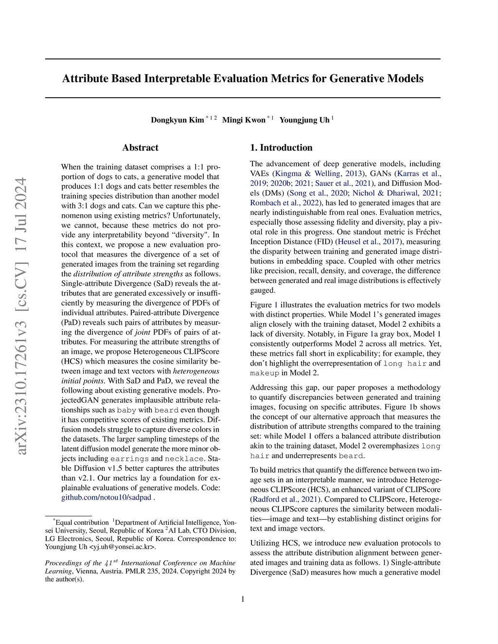 Attribute Based Interpretable Evaluation Metrics for Generative Models