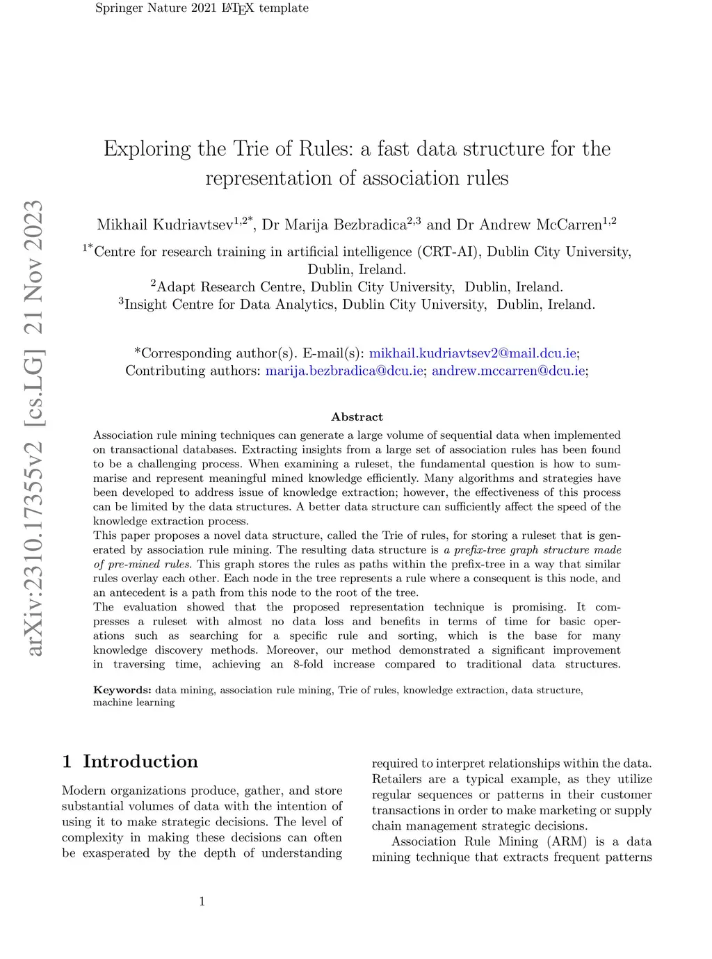 Exploring the Trie of Rules: a fast data structure for the