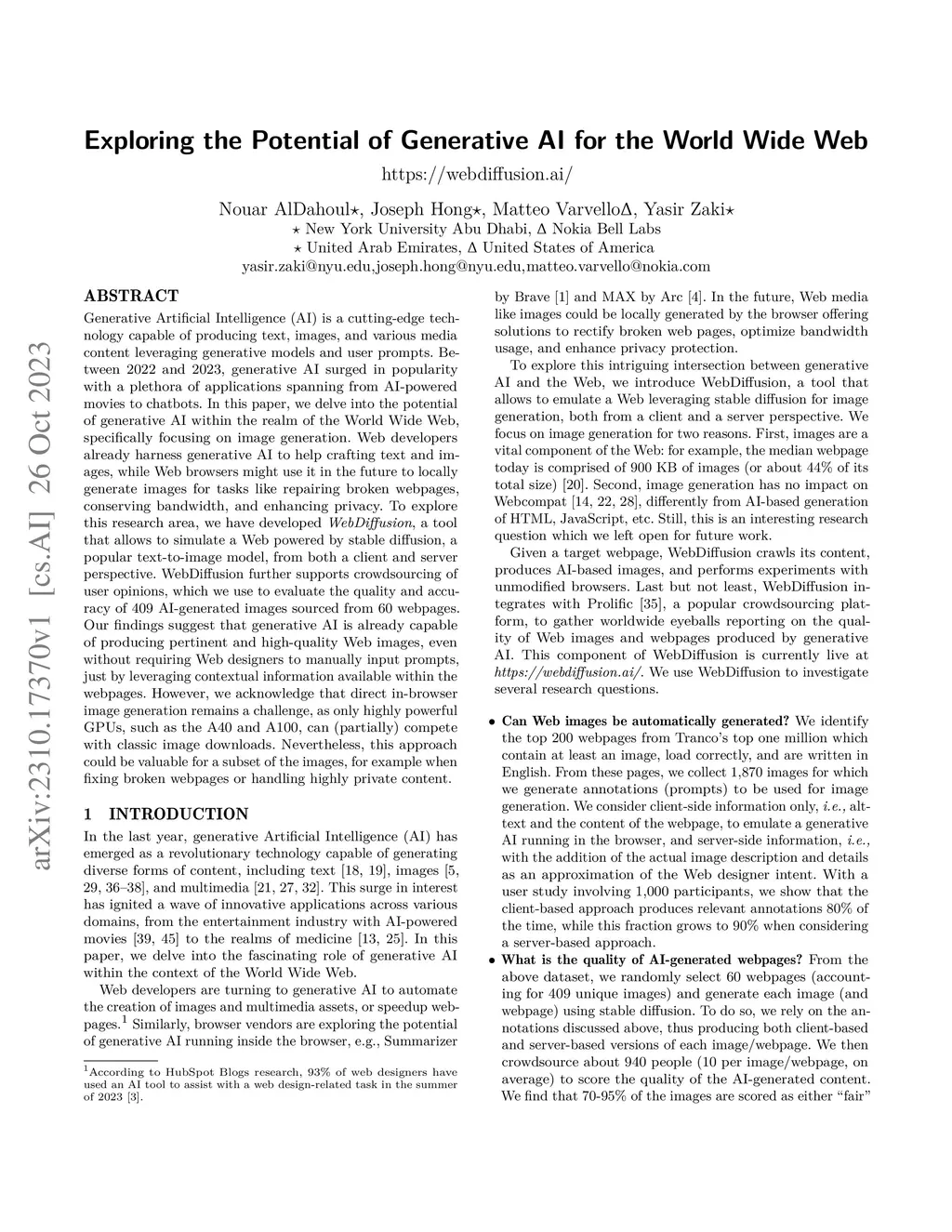 Exploring the Potential of Generative AI for the World Wide Web