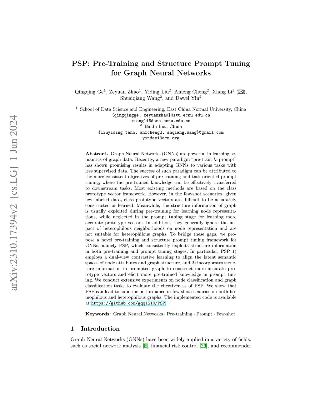 PSP: Pre-Training and Structure Prompt Tuning for Graph Neural Networks