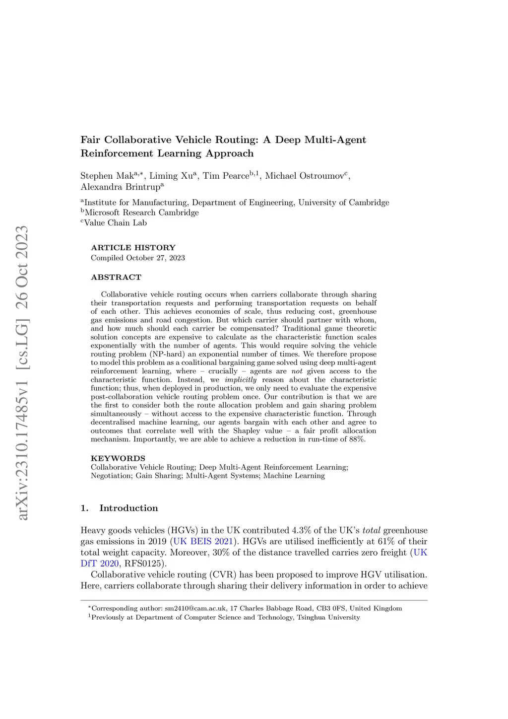 Fair collaborative vehicle routing: A deep multi-agent reinforcement