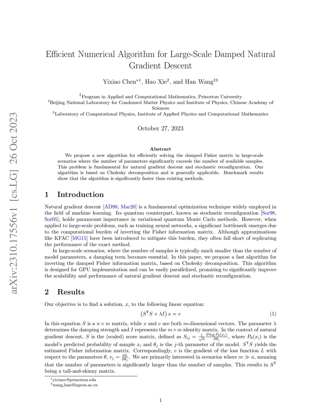 We propose a new algorithm for efficiently solving the damped Fisher matrix in large-scale scenarios where the number of parameters significantly exceeds the number of available samples. This problem is fundamental for natural gradient descent and stochastic reconfiguration. Our algorithm is based on Cholesky decomposition and is generally applicable. Benchmark results show that the algorithm is significantly faster than existing methods.