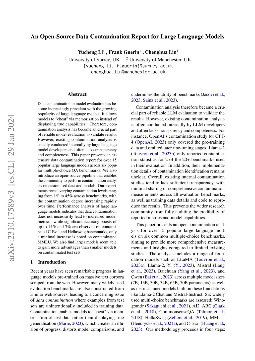 Data contamination in model evaluation has become increasingly prevalent with the growing popularity of large language models. It allows models to "cheat" via memorisation instead of displaying true capabilities. Therefore, contamination analysis has become an crucial part of reliable model evaluation to validate results. However, existing contamination analysis is usually conducted internally by large language model developers and often lacks transparency and completeness. This paper presents an extensive data contamination report for over 15 popular large language models across six popular multiple-choice QA benchmarks. We also introduce an open-source pipeline that enables the community to perform contamination analysis on customised data and models. Our experiments reveal varying contamination levels ranging from 1\% to 45\% across benchmarks, with the contamination degree increasing rapidly over time. Performance analysis of large language models indicates that data contamination does not necessarily lead to increased model metrics: while significant accuracy boosts of up to 14\% and 7\% are observed on contaminated C-Eval and Hellaswag benchmarks, only a minimal increase is noted on contaminated MMLU. We also find larger models seem able to gain more advantages than smaller models on contaminated test sets.