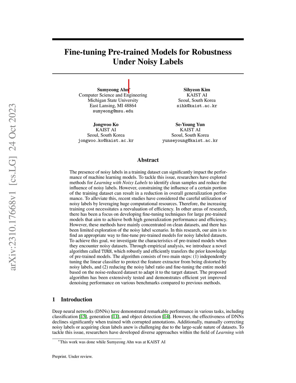 Fine tuning Pre trained Models for Robustness Under Noisy Labels