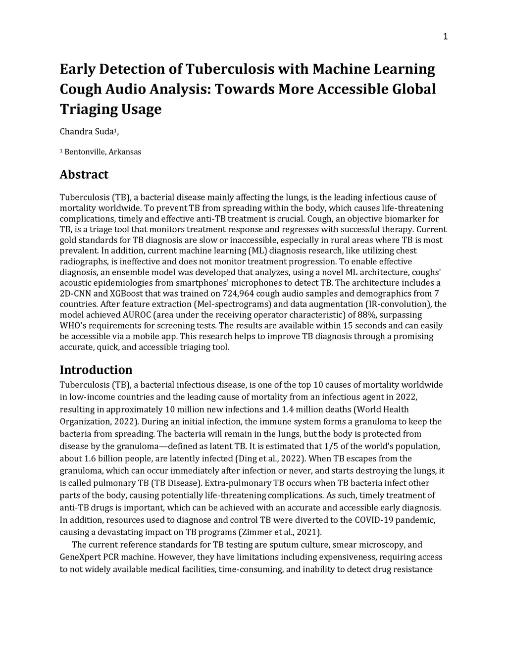 Early Detection of Tuberculosis with Machine Learning Cough Audio