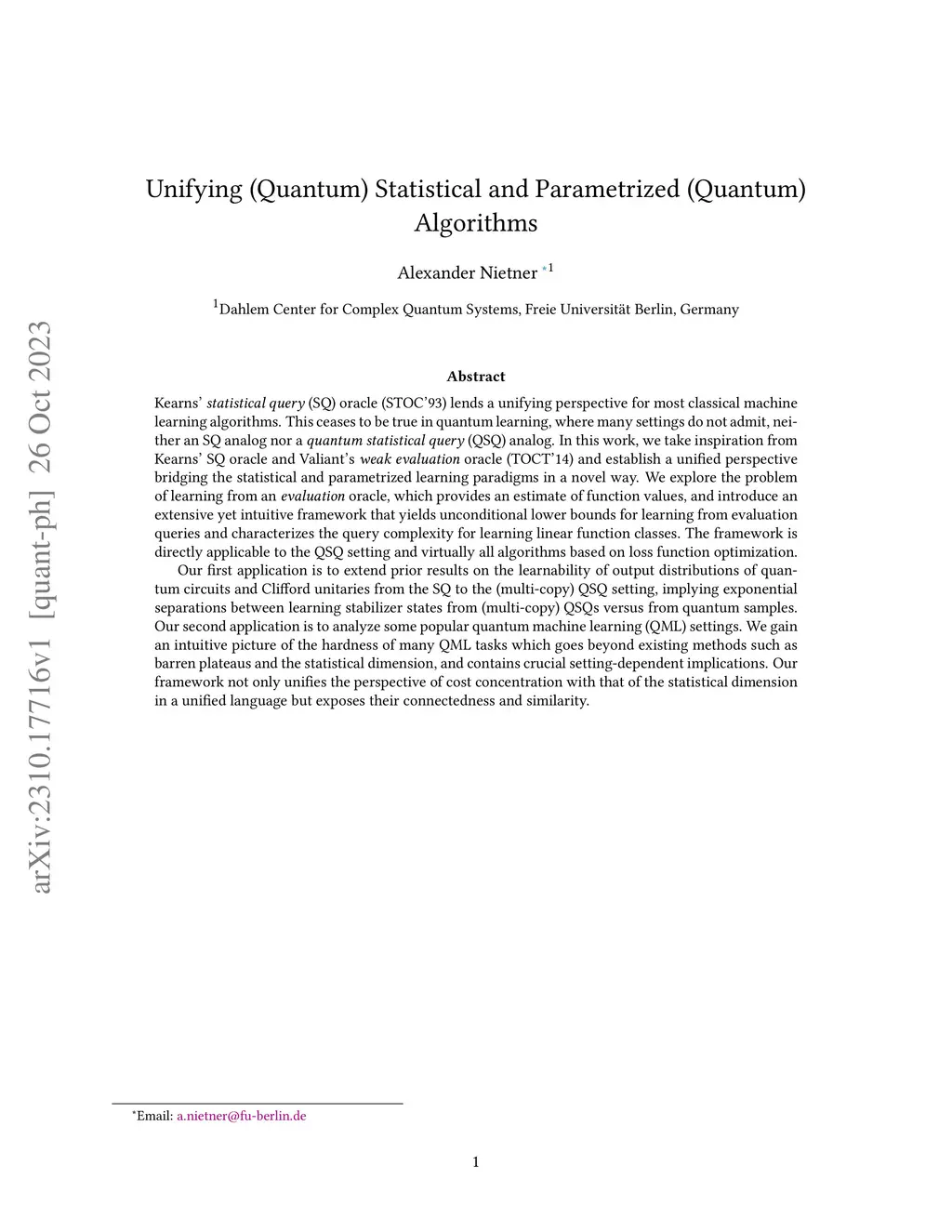 Unifying (Quantum) Statistical and Parametrized (Quantum) Algorithms