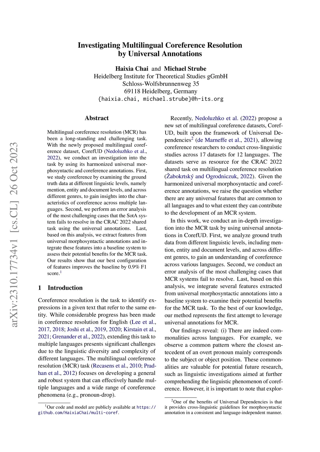 Investigating Multilingual Coreference Resolution by Universal