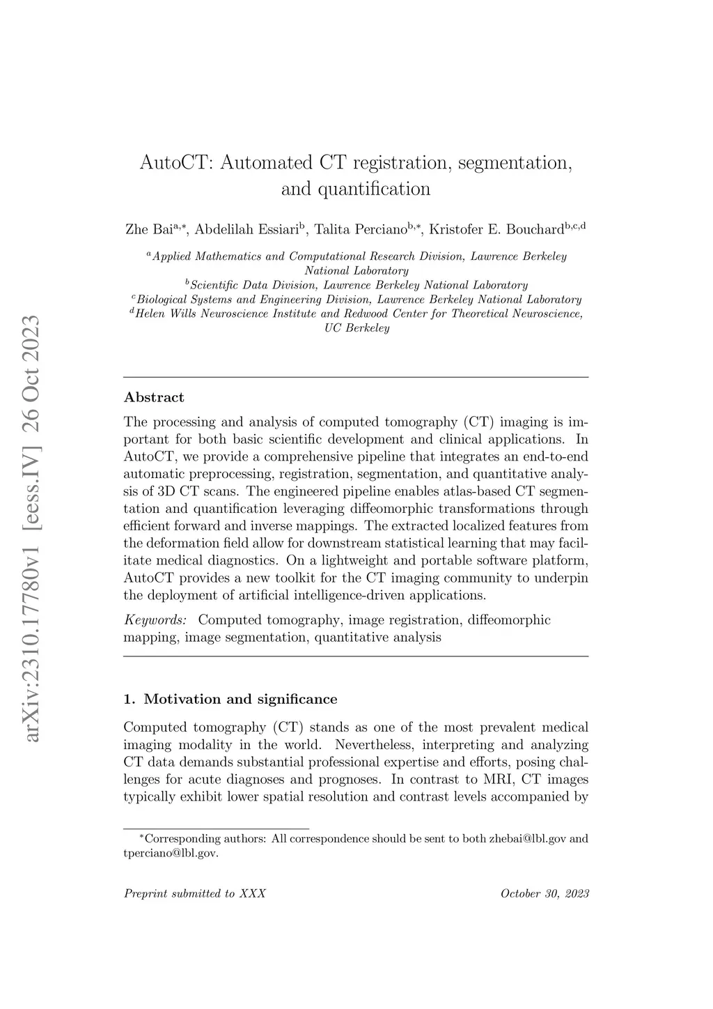 AutoCT: Automated CT registration, segmentation, and quantification