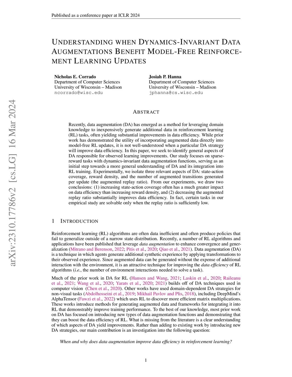 Recently, data augmentation (DA) has emerged as a method for leveraging domain knowledge to inexpensively generate additional data in reinforcement learning (RL) tasks, often yielding substantial improvements in data efficiency. While prior work has demonstrated the utility of incorporating augmented data directly into model-free RL updates, it is not well-understood when a particular DA strategy will improve data efficiency. In this paper, we seek to identify general aspects of DA responsible for observed learning improvements. Our study focuses on sparse-reward tasks with dynamics-invariant data augmentation functions, serving as an initial step towards a more general understanding of DA and its integration into RL training. Experimentally, we isolate three relevant aspects of DA: state-action coverage, reward density, and the number of augmented transitions generated per update (the augmented replay ratio). From our experiments, we draw two conclusions: (1) increasing state-action coverage often has a much greater impact on data efficiency than increasing reward density, and (2) decreasing the augmented replay ratio substantially improves data efficiency. In fact, certain tasks in our empirical study are solvable only when the replay ratio is sufficiently low.