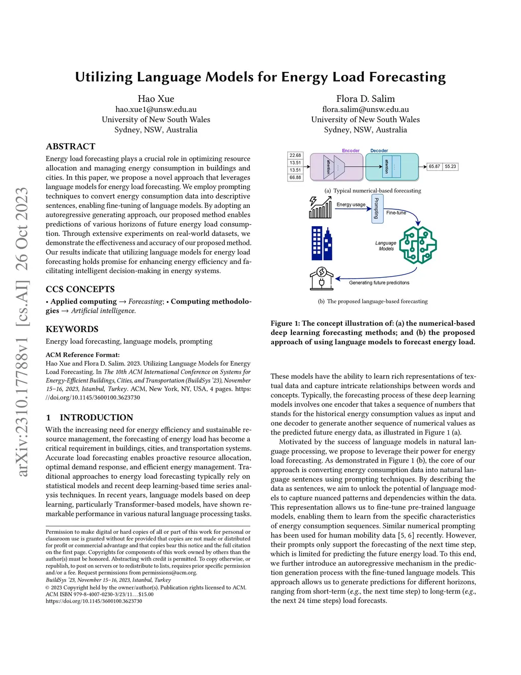 Energy load forecasting plays a crucial role in optimizing resource allocation and managing energy consumption in buildings and cities. In this paper, we propose a novel approach that leverages language models for energy load forecasting. We employ prompting techniques to convert energy consumption data into descriptive sentences, enabling fine-tuning of language models. By adopting an autoregressive generating approach, our proposed method enables predictions of various horizons of future energy load consumption. Through extensive experiments on real-world datasets, we demonstrate the effectiveness and accuracy of our proposed method. Our results indicate that utilizing language models for energy load forecasting holds promise for enhancing energy efficiency and facilitating intelligent decision-making in energy systems.