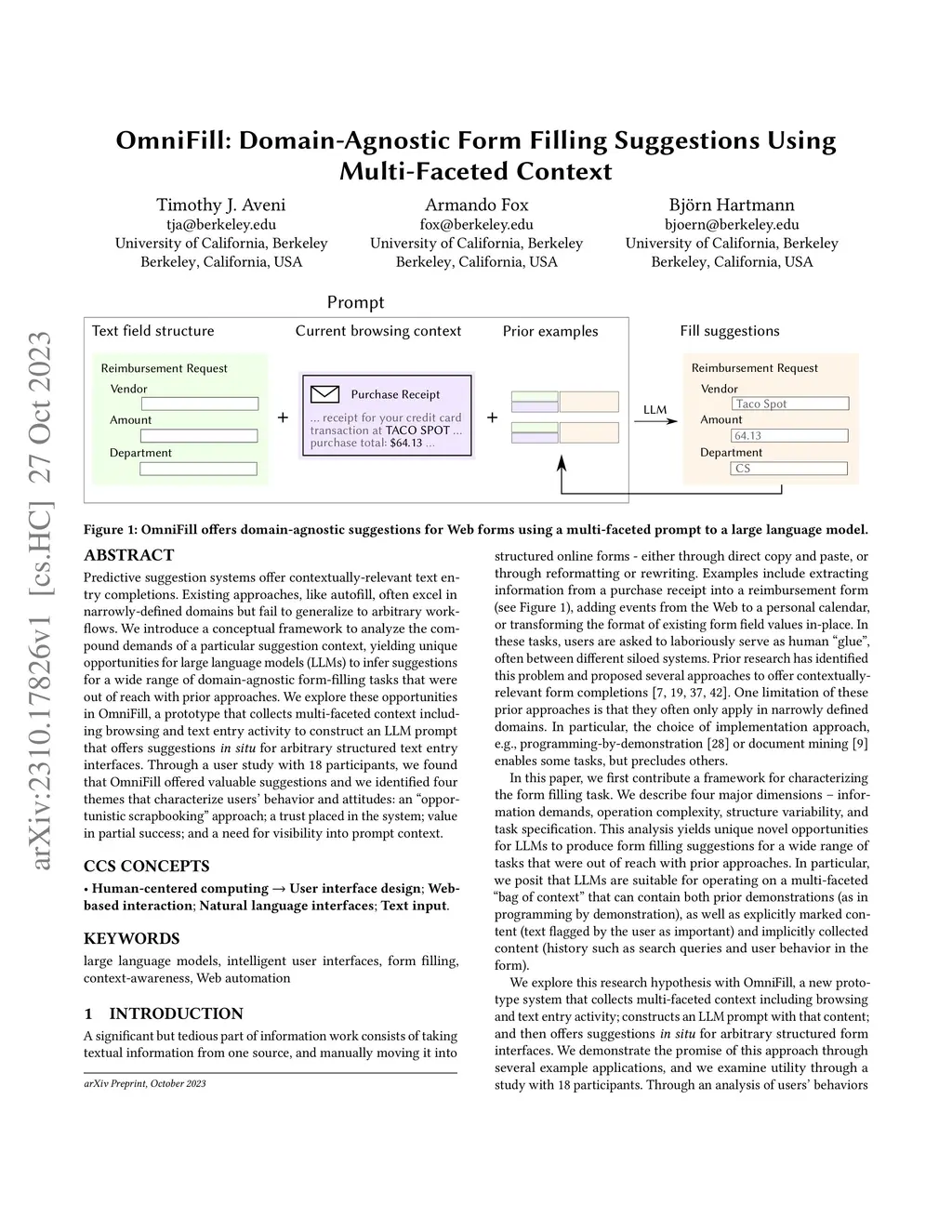 OmniFill: Domain-Agnostic Form Filling Suggestions Using Multi-Faceted