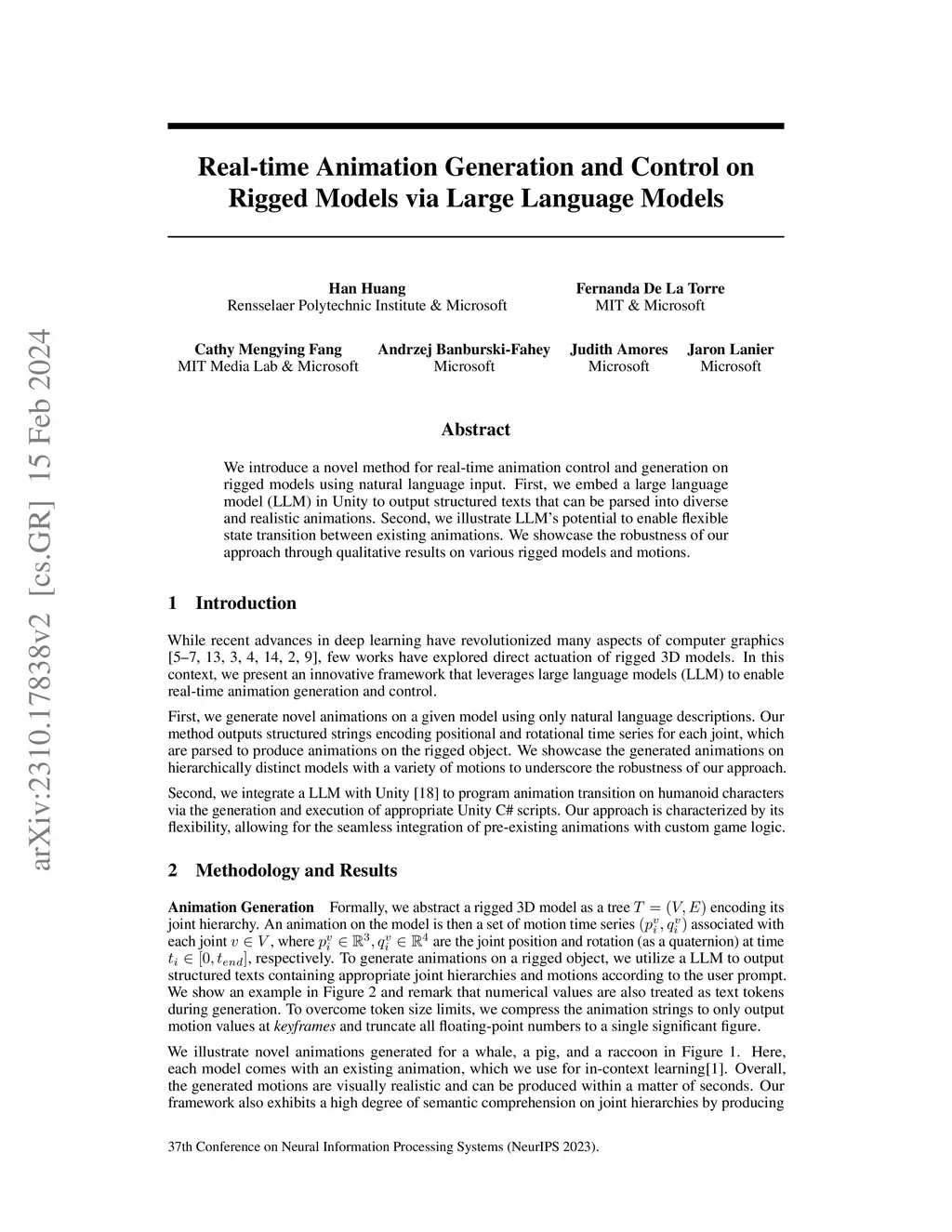 Real-time Animation Generation and Control on Rigged Models via Large