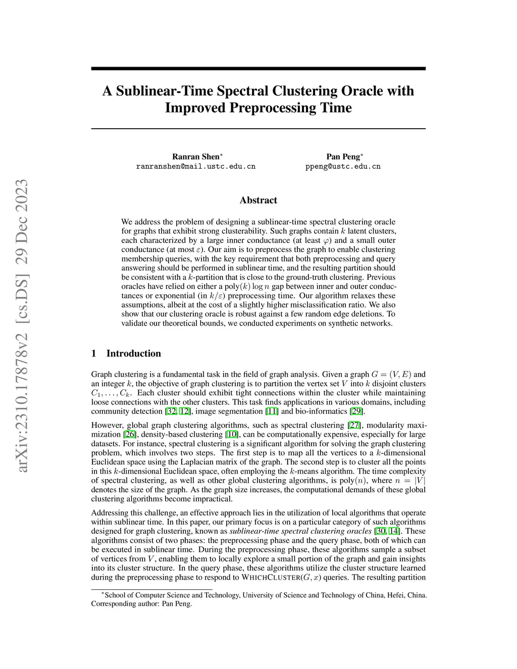 A Sublinear-Time Spectral Clustering Oracle with Improved Preprocessing