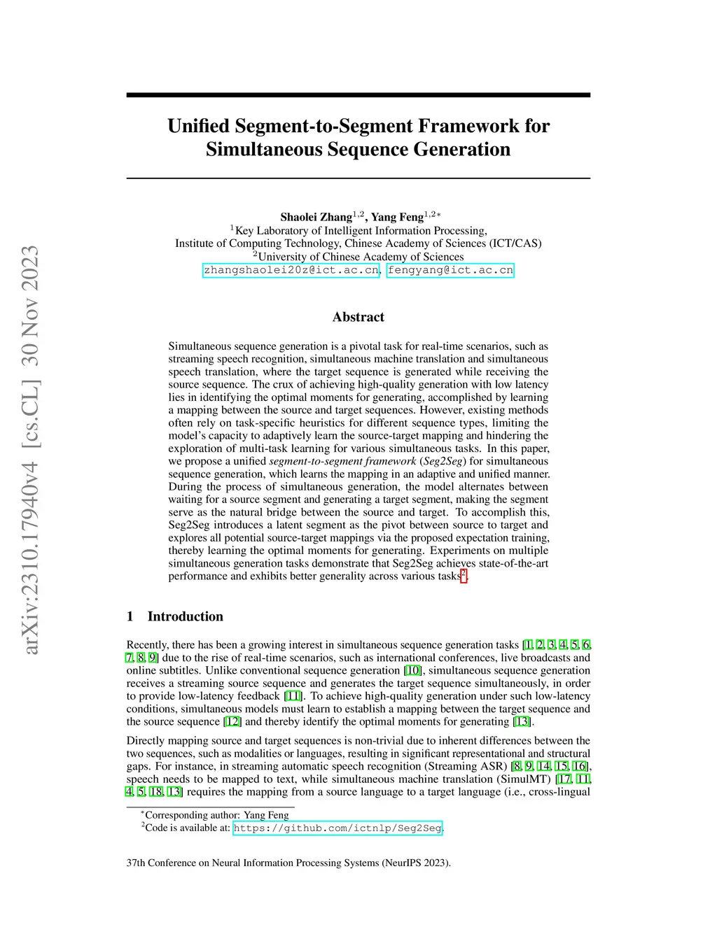 Unified Segment-to-Segment Framework for Simultaneous Sequence