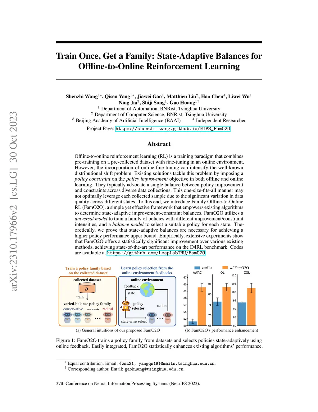 Train Once, Get a Family: State-Adaptive Balances for Offline-to-Online