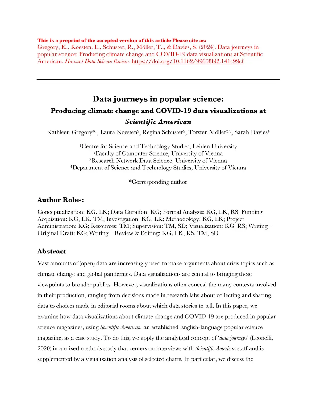 Data journeys in popular science: Producing climate change and COVID-19
