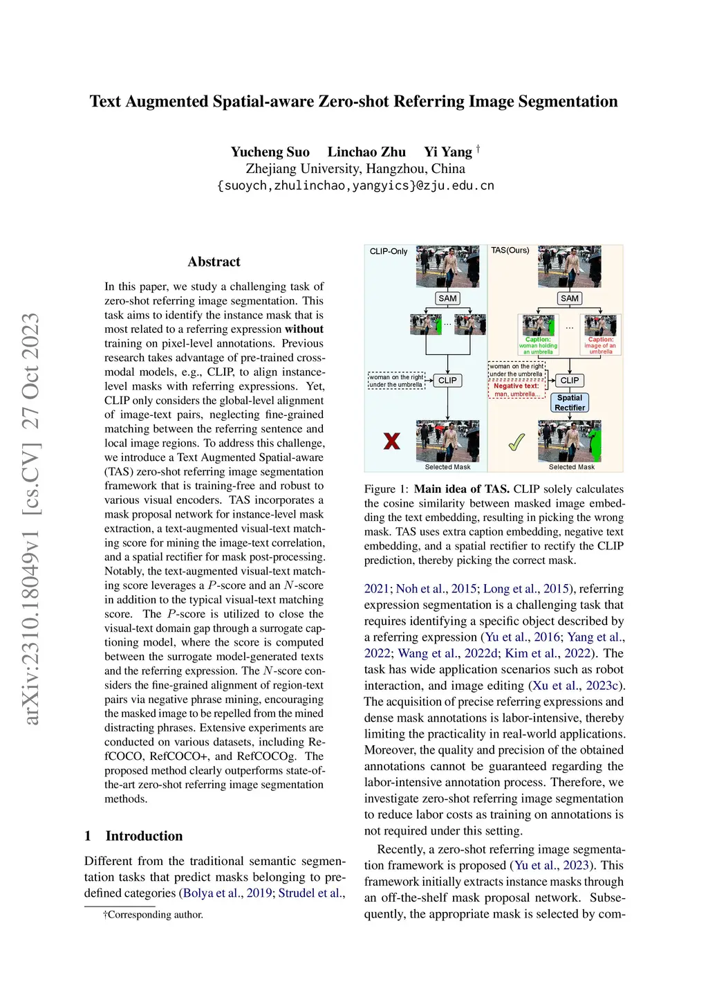 Text Augmented Spatial-aware Zero-shot Referring Image Segmentation