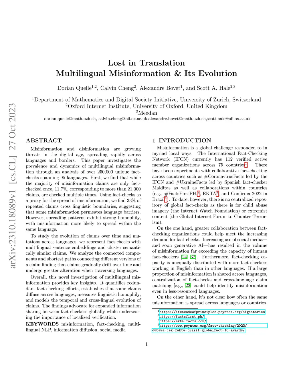 Lost in translation: using global fact-checks to measure multilingual misinformation prevalence, spread, and evolution