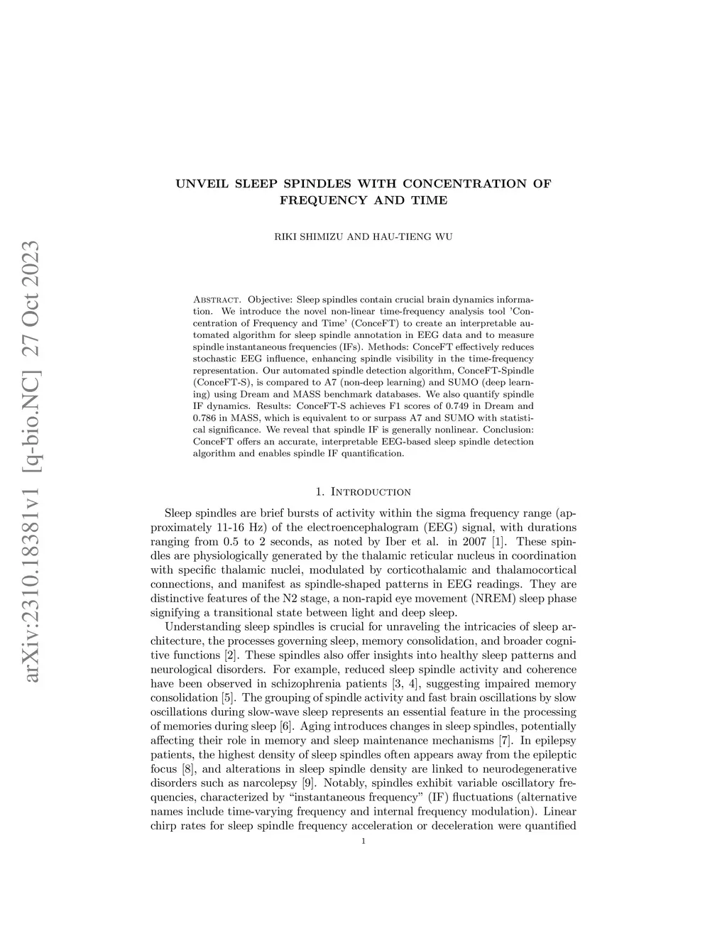 Unveil Sleep Spindles with Concentration of Frequency and Time
