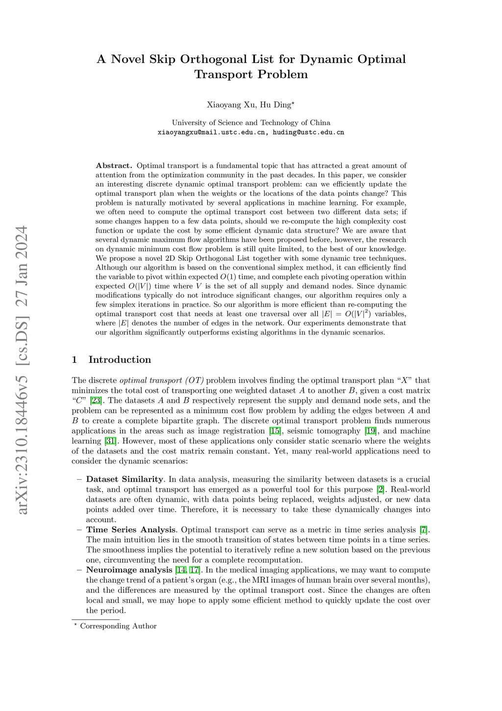 A Novel Skip Orthogonal List for Dynamic Optimal Transport Problem