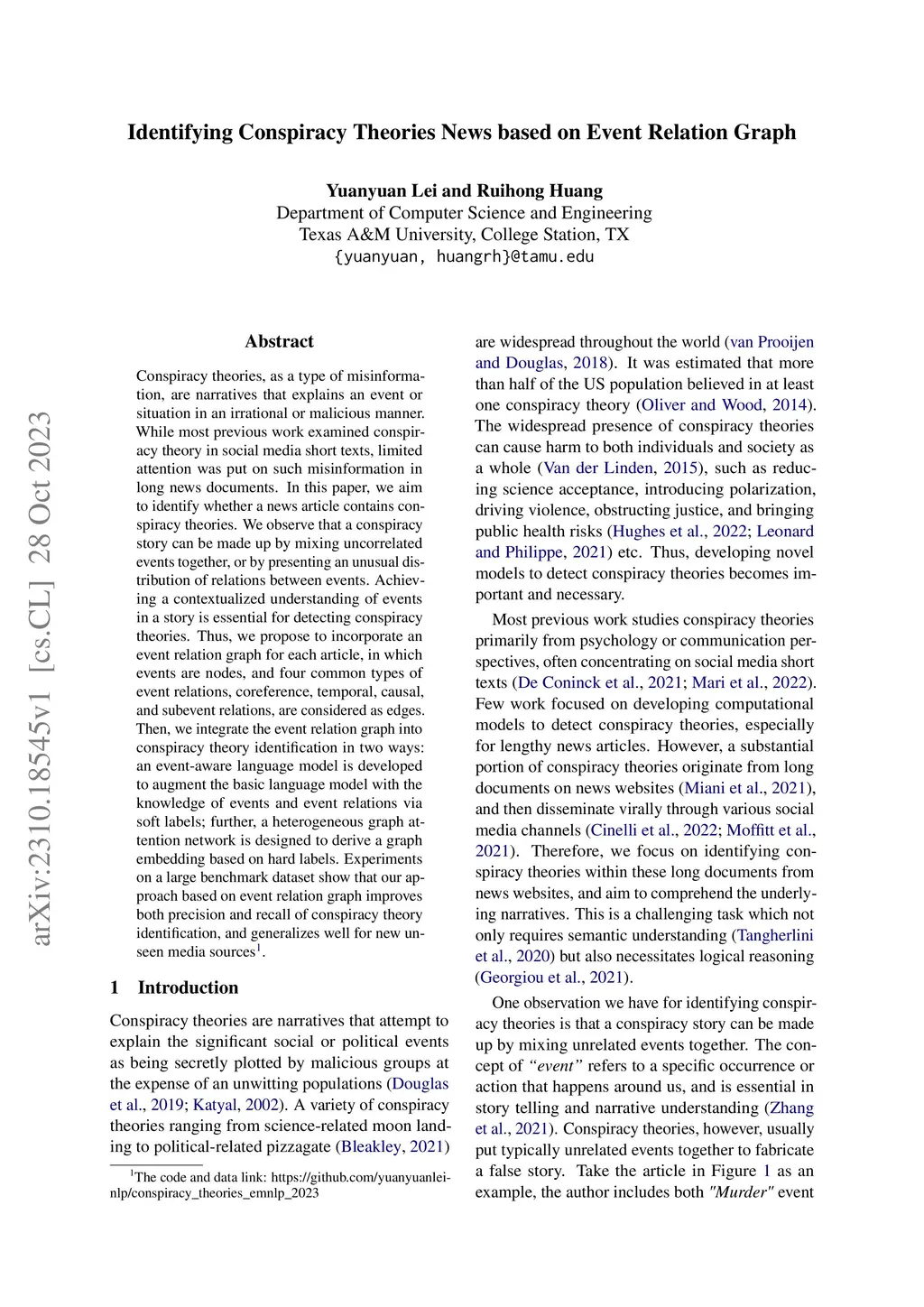Identifying Conspiracy Theories News based on Event Relation Graph
