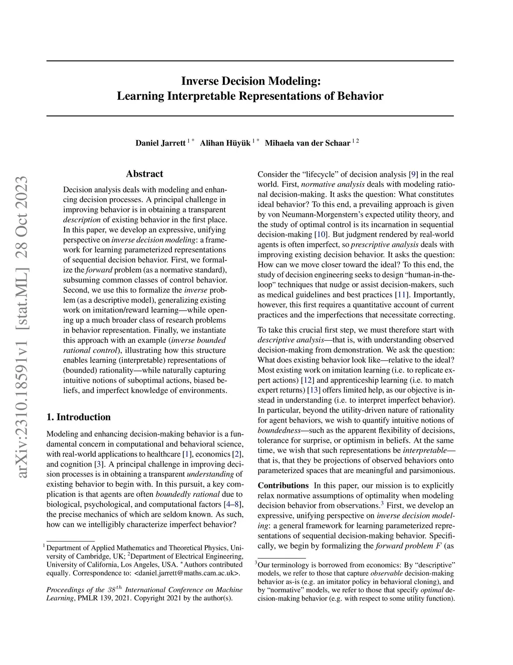 Inverse Decision Modeling: Learning Interpretable Representations of