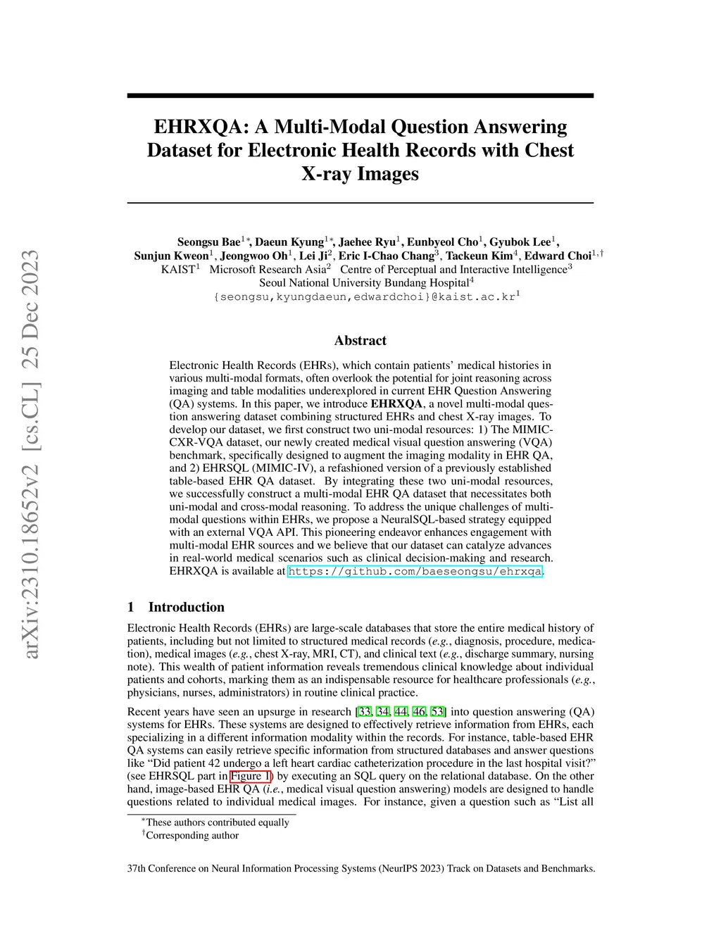 EHRXQA: A Multi-Modal Question Answering Dataset for Electronic Health