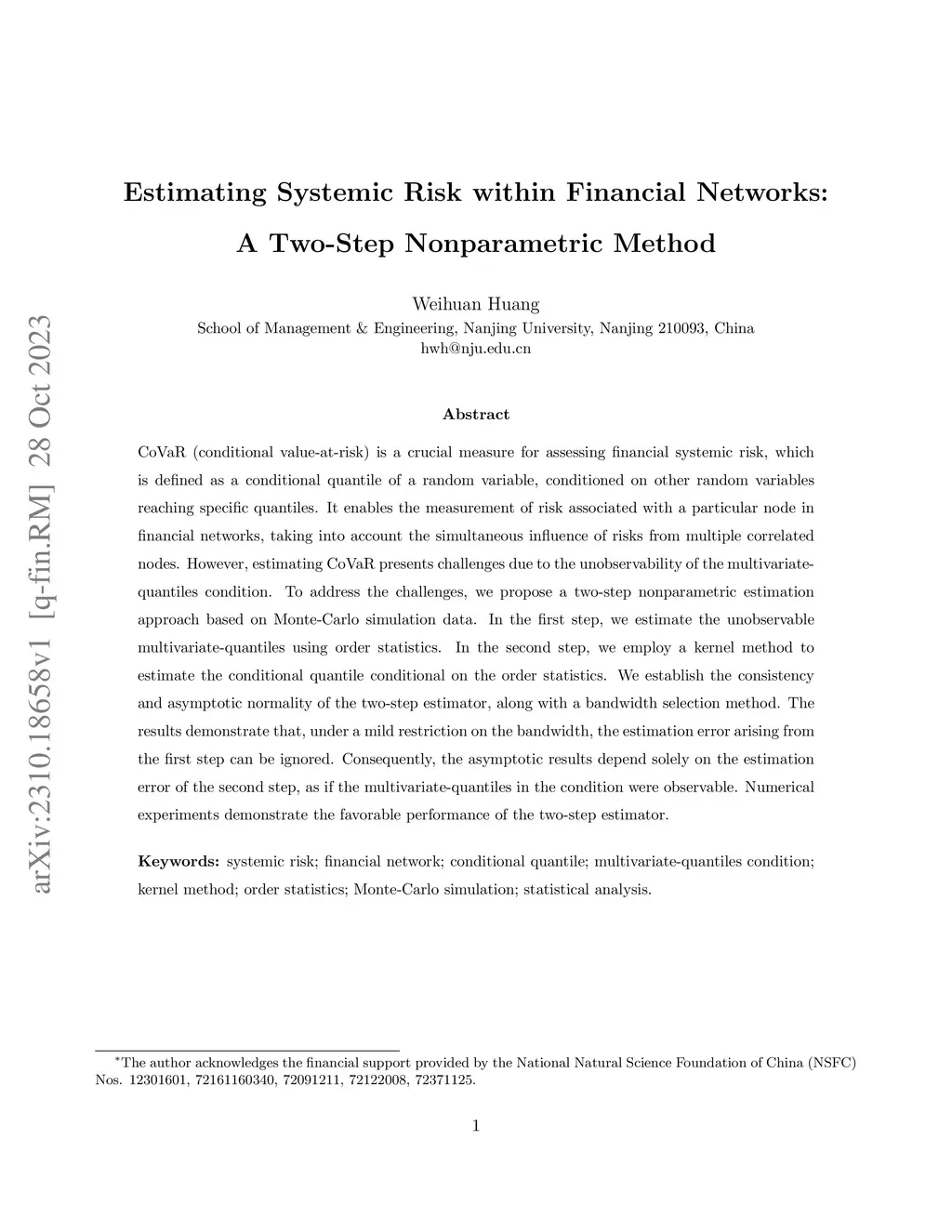 CoVaR (conditional value-at-risk) is a crucial measure for assessing financial systemic risk, which is defined as a conditional quantile of a random variable, conditioned on other random variables reaching specific quantiles. It enables the measurement of risk associated with a particular node in financial networks, taking into account the simultaneous influence of risks from multiple correlated nodes. However, estimating CoVaR presents challenges due to the unobservability of the multivariate-quantiles condition. To address the challenges, we propose a two-step nonparametric estimation approach based on Monte-Carlo simulation data. In the first step, we estimate the unobservable multivariate-quantiles using order statistics. In the second step, we employ a kernel method to estimate the conditional quantile conditional on the order statistics. We establish the consistency and asymptotic normality of the two-step estimator, along with a bandwidth selection method. The results demonstrate that, under a mild restriction on the bandwidth, the estimation error arising from the first step can be ignored. Consequently, the asymptotic results depend solely on the estimation error of the second step, as if the multivariate-quantiles in the condition were observable. Numerical experiments demonstrate the favorable performance of the two-step estimator.