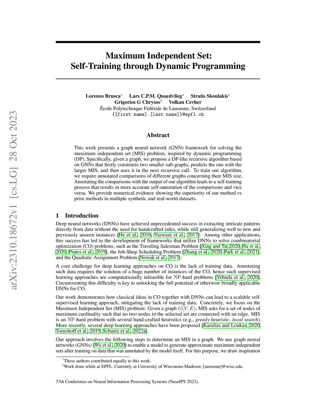 Maximum Independent Set: Self-Training through Dynamic Programming
