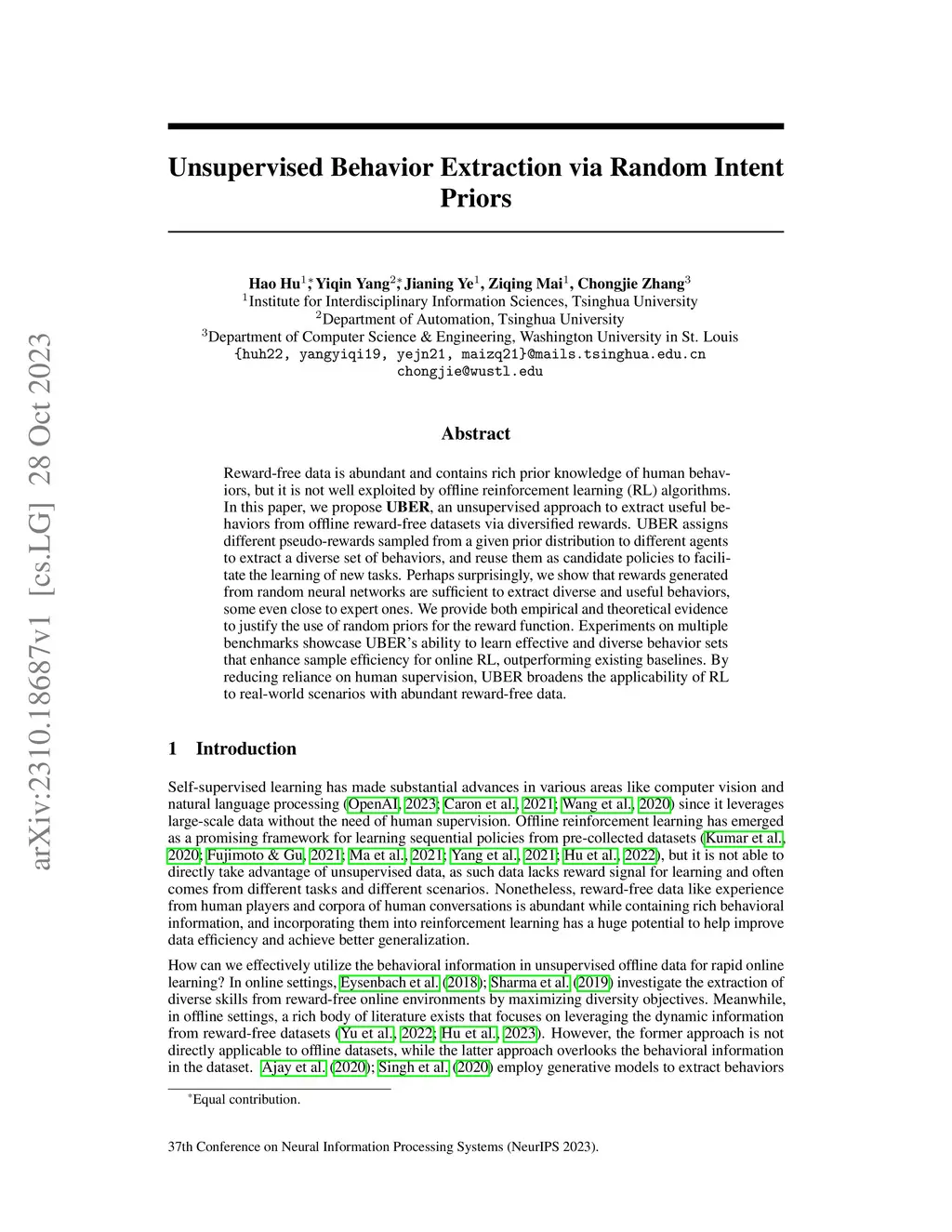 Unsupervised Behavior Extraction via Random Intent Priors