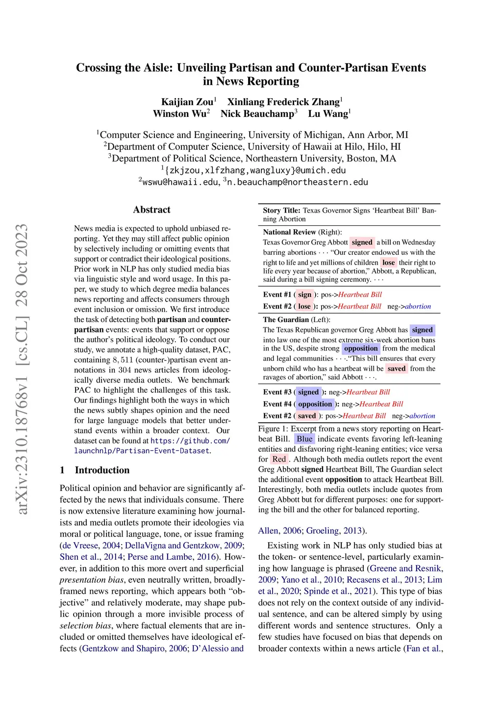Crossing the Aisle: Unveiling Partisan and Counter-Partisan Events in