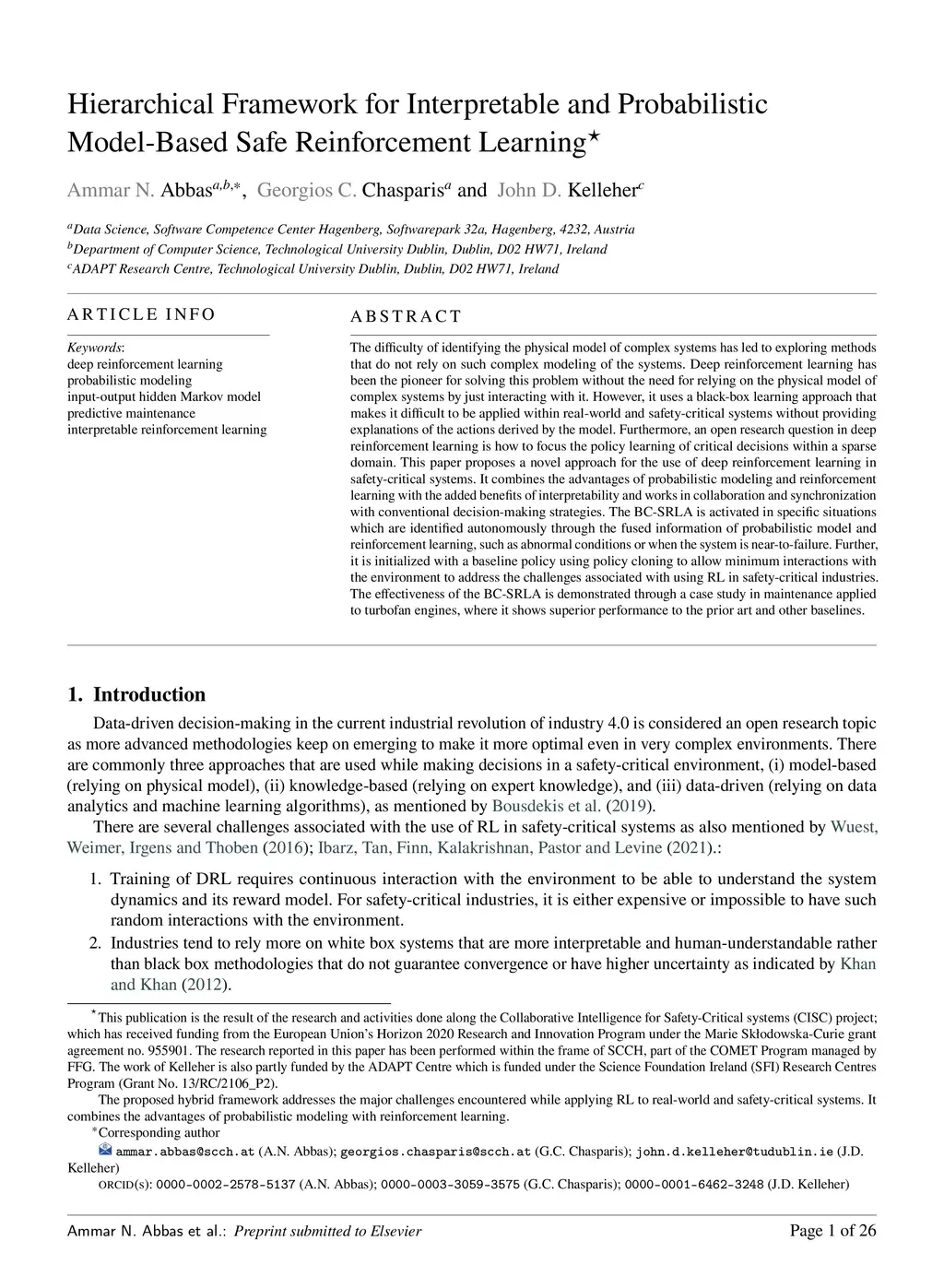 The difficulty of identifying the physical model of complex systems has led to exploring methods that do not rely on such complex modeling of the systems. Deep reinforcement learning has been the pioneer for solving this problem without the need for relying on the physical model of complex systems by just interacting with it. However, it uses a black-box learning approach that makes it difficult to be applied within real-world and safety-critical systems without providing explanations of the actions derived by the model. Furthermore, an open research question in deep reinforcement learning is how to focus the policy learning of critical decisions within a sparse domain. This paper proposes a novel approach for the use of deep reinforcement learning in safety-critical systems. It combines the advantages of probabilistic modeling and reinforcement learning with the added benefits of interpretability and works in collaboration and synchronization with conventional decision-making strategies. The BC-SRLA is activated in specific situations which are identified autonomously through the fused information of probabilistic model and reinforcement learning, such as abnormal conditions or when the system is near-to-failure. Further, it is initialized with a baseline policy using policy cloning to allow minimum interactions with the environment to address the challenges associated with using RL in safety-critical industries. The effectiveness of the BC-SRLA is demonstrated through a case study in maintenance applied to turbofan engines, where it shows superior performance to the prior art and other baselines.