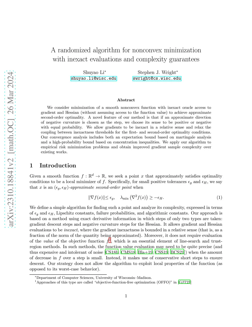 A randomized algorithm for nonconvex minimization with inexact
