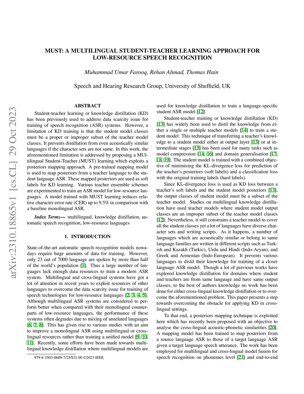 MUST: A Multilingual Student-Teacher Learning approach for low-resource