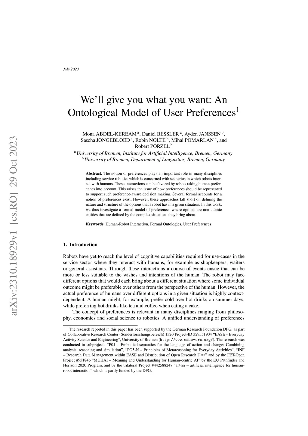 An Ontological Model of User Preferences