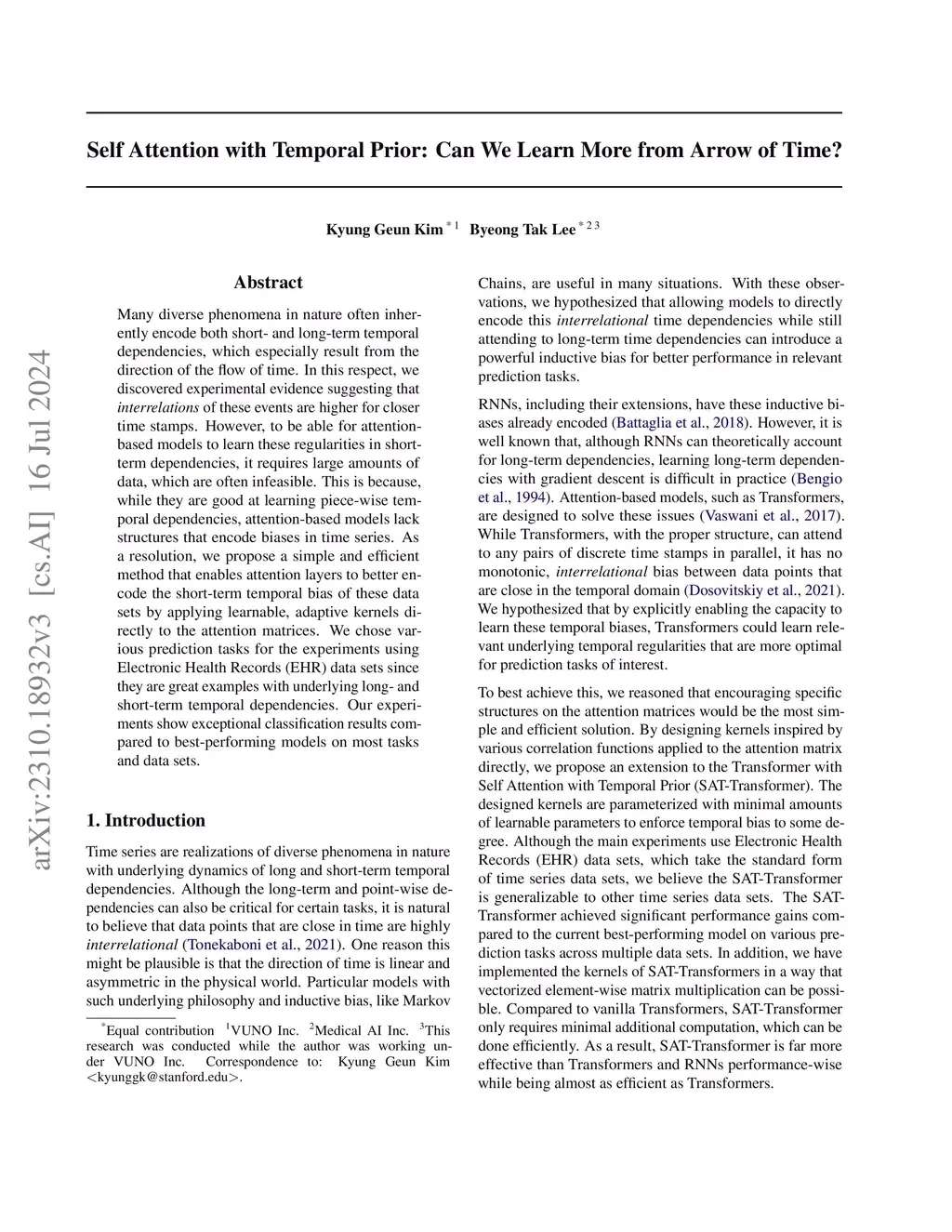 Self Attention with Temporal Prior: Can We Learn More from Arrow of