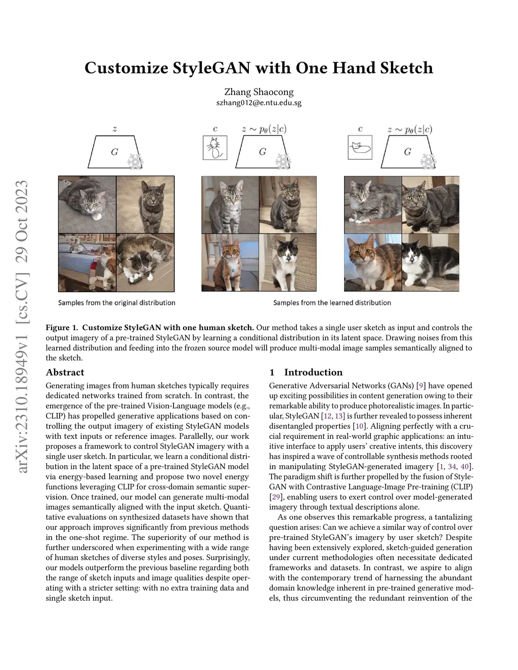 Customize StyleGAN with One Hand Sketch