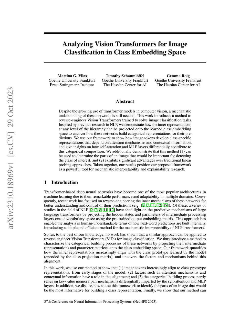 Despite the growing use of transformer models in computer vision, a mechanistic understanding of these networks is still needed. This work introduces a method to reverse-engineer Vision Transformers trained to solve image classification tasks. Inspired by previous research in NLP, we demonstrate how the inner representations at any level of the hierarchy can be projected onto the learned class embedding space to uncover how these networks build categorical representations for their predictions. We use our framework to show how image tokens develop class-specific representations that depend on attention mechanisms and contextual information, and give insights on how self-attention and MLP layers differentially contribute to this categorical composition. We additionally demonstrate that this method (1) can be used to determine the parts of an image that would be important for detecting the class of interest, and (2) exhibits significant advantages over traditional linear probing approaches. Taken together, our results position our proposed framework as a powerful tool for mechanistic interpretability and explainability research.