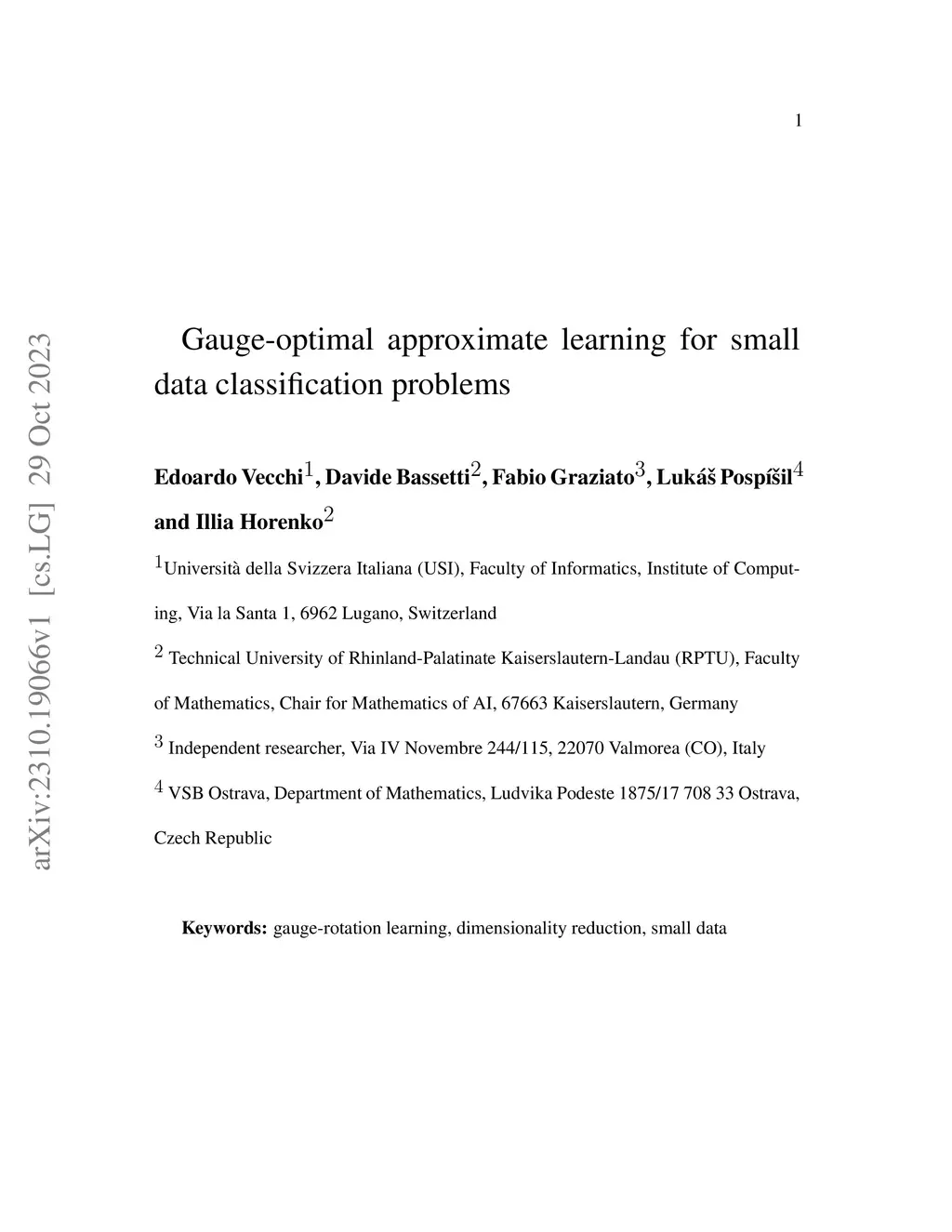 Gauge-optimal approximate learning for small data classification