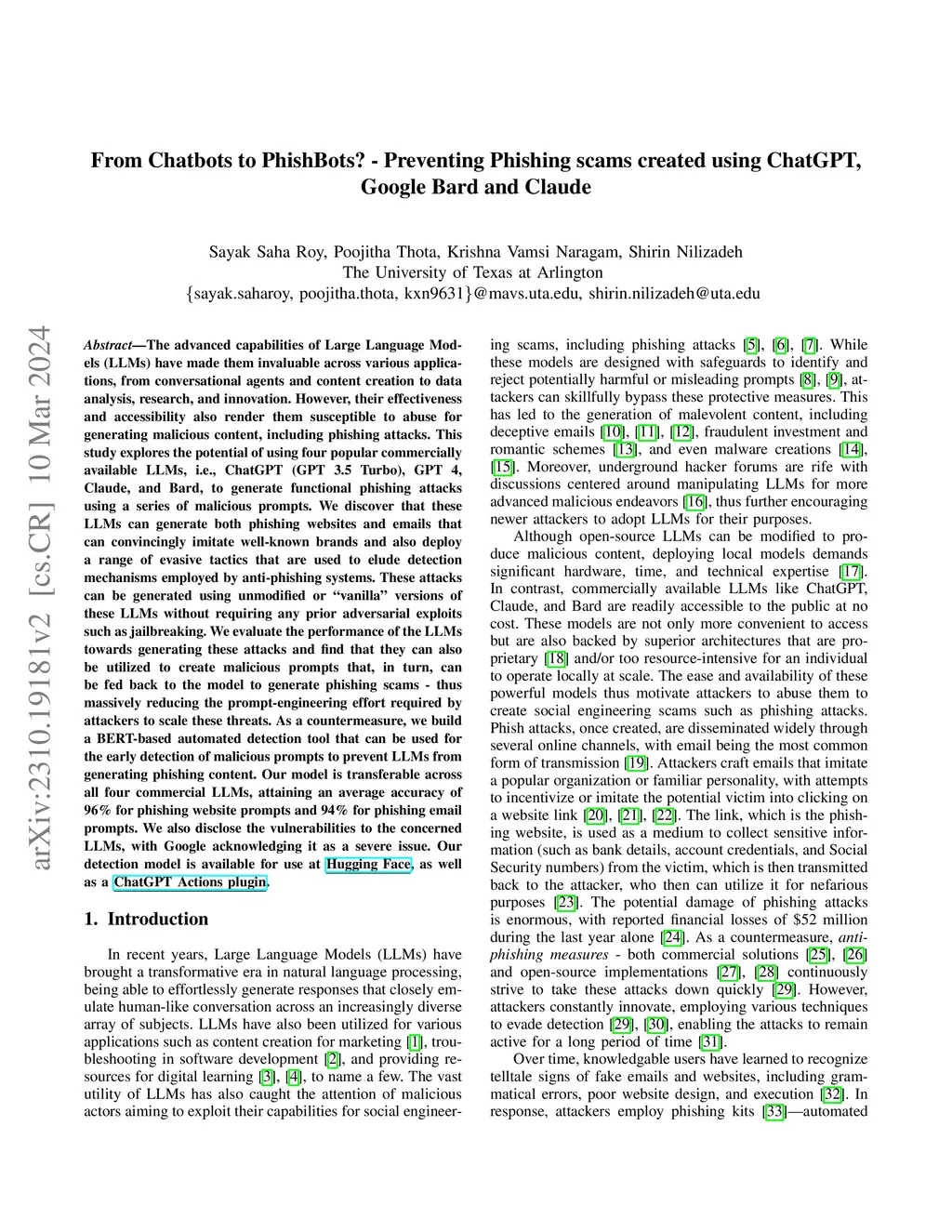 From Chatbots to PhishBots? -- Preventing Phishing scams created using